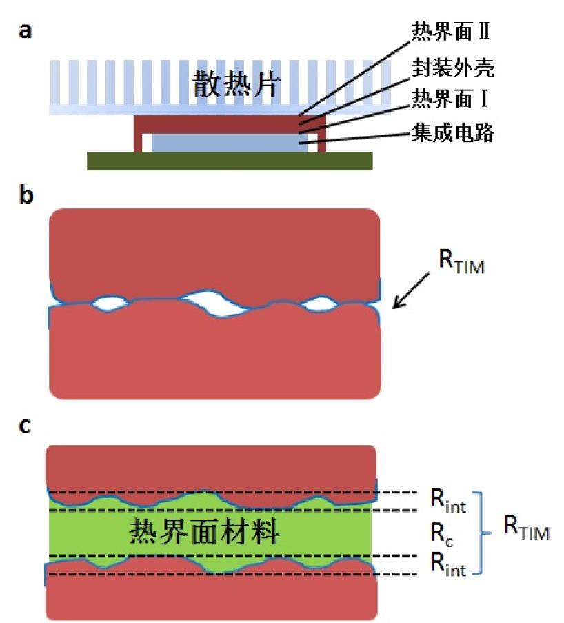 图1:a高密度集成电路散热示意图;b&c热界面材料示意图(Copyright 物理学进展2018)
