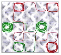 图1:粒子在对流场中的轨迹。不同颜色表示不同的轨迹。