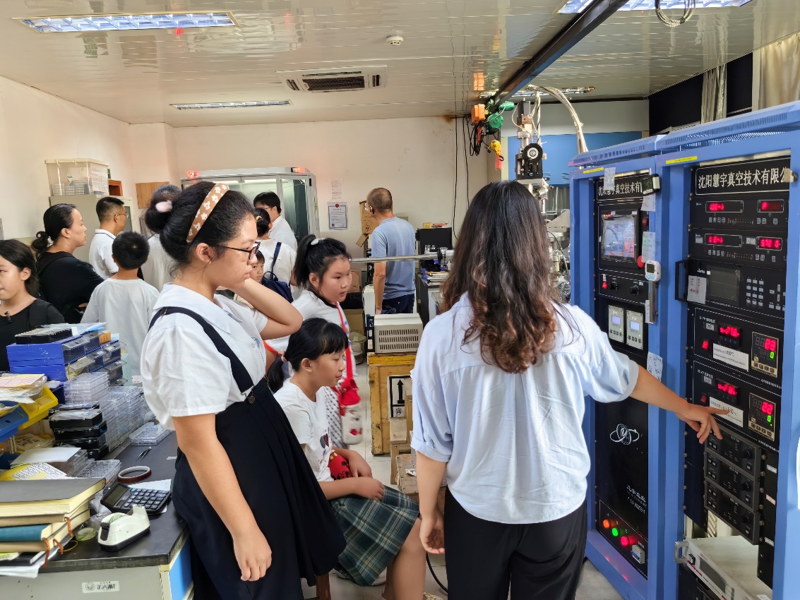 活动最后,大家参观了磁性薄膜生长实验室。该实验室主要围绕磁性氧化物中磁振子输运特性开展研究,具体研究手段包括自旋塞贝克效应和自旋泵浦效应等,相关成果在物理评论快报等国际高水平期刊发表一作/通讯作者论文10余篇。此次开放了磁性薄膜生长实验室,向公众展示了磁控溅射仪、X射线衍射仪等一批先进仪器。