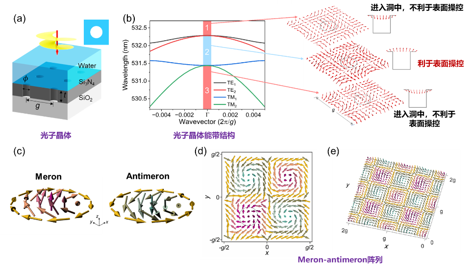 图1. 介电光子晶体的能带特征及meron纹理阵列