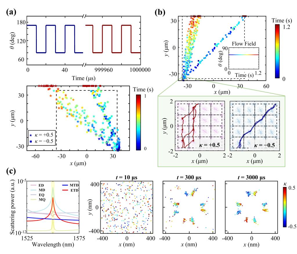 手性分选在生物医学、材料科学和制药等领域具有重要作用。自然界中的手性分子多存在于纳米尺度上,超表面拥有强大的光场操控能力,可以产生强近场梯度,突破衍射极限,实现对纳米级手性颗粒的操控。然而,现有研究聚焦于静态场中纳米手性颗粒的分离和选择性捕获,难以满足实际应用对高效、高速分选的需求。