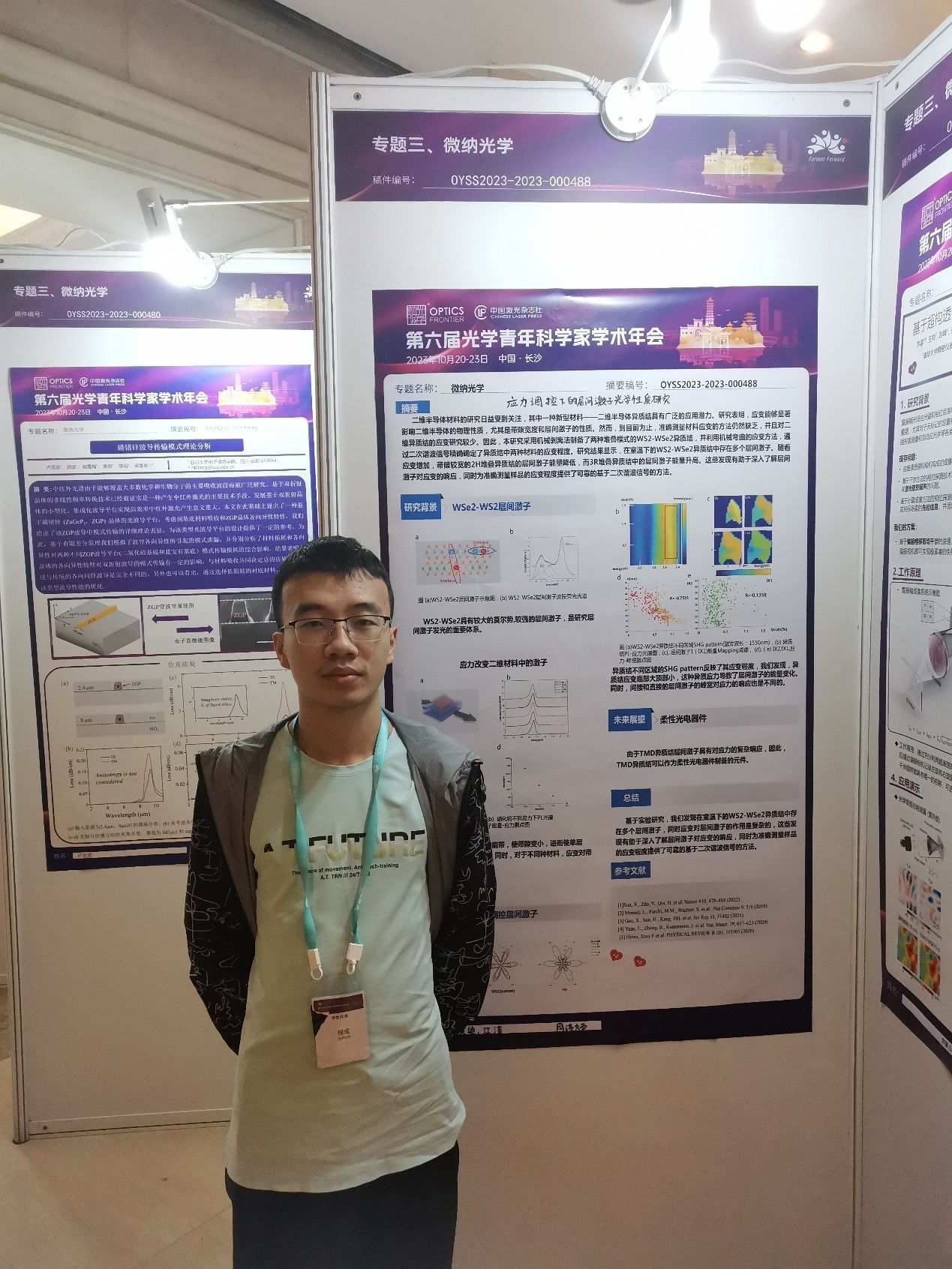 始终坚持把本科人才培养工作放在首要位置,鼓励同学们将课堂知识的学习和实践相结合,让学生不仅在课堂上学习知识,更能走进实验室,积极参与前沿研究,并最终突破自我,获得创新成果。在本次论坛中,学院大四光电专业本科生徐俊波和大三物理拔尖本科生程成积极参与,展示了自己的研究成果并张贴海报,获得了与会师生们的广泛关注。