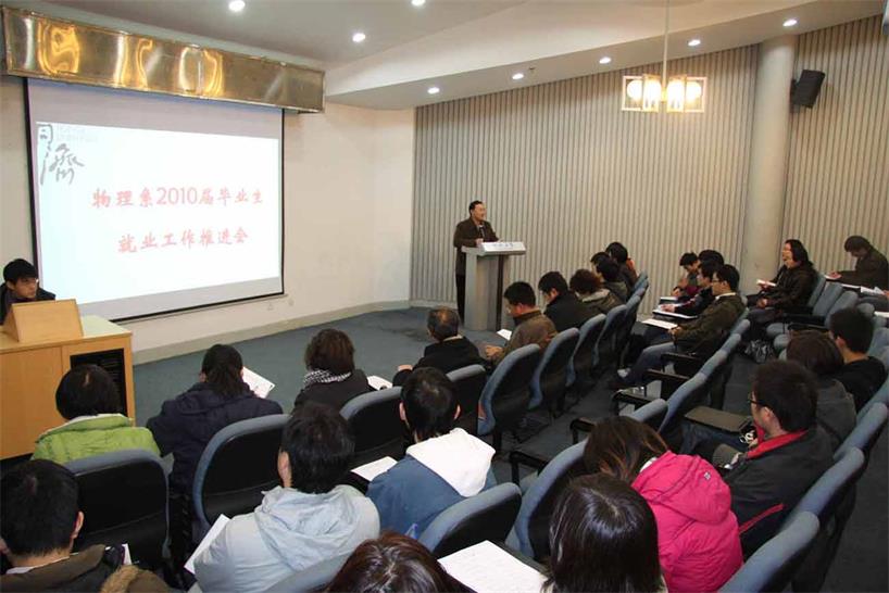 12月15日下午1:30瑞安楼报告厅,物理系召开了2010届毕业生就业工作推进会,物理系系主任王占山教授、系党总支书记周斌教授、副系主任羊亚平教授、波耳所副所长沈军教授和鲍鸿吉副教授以及相关人员和毕业班学生均参加了会议。系主任王占山教授、系党总支副书记考书健老师等均在会上发言。会议还特别邀请了性爱电影 大学生就业指导中心副主任陈红老师介绍在校学生在求职和职业规划方面的一些工作和(未来的一些)计划。