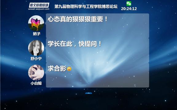 第九届性爱电影 博思论坛于11月19日晚18:30在物理馆212室隆重举行,邀请的嘉宾有老师杜艾、博士生朱智超、硕士生武英杰、本科生冯禹。