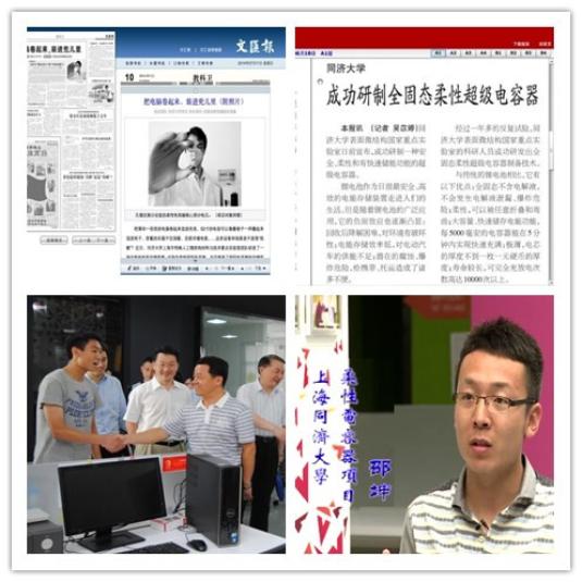 脱颖而出进入上海市比赛,最后来到全国决赛,历经多重坎坷而永不言弃奋勇争先,充分发扬了物理学子追求卓越的精神。”全固态柔性超级电容器“团队曾先后被文汇报、科技报以及凤凰卫视等全国多家媒体报道,受到了团中央领导的高度赞扬。