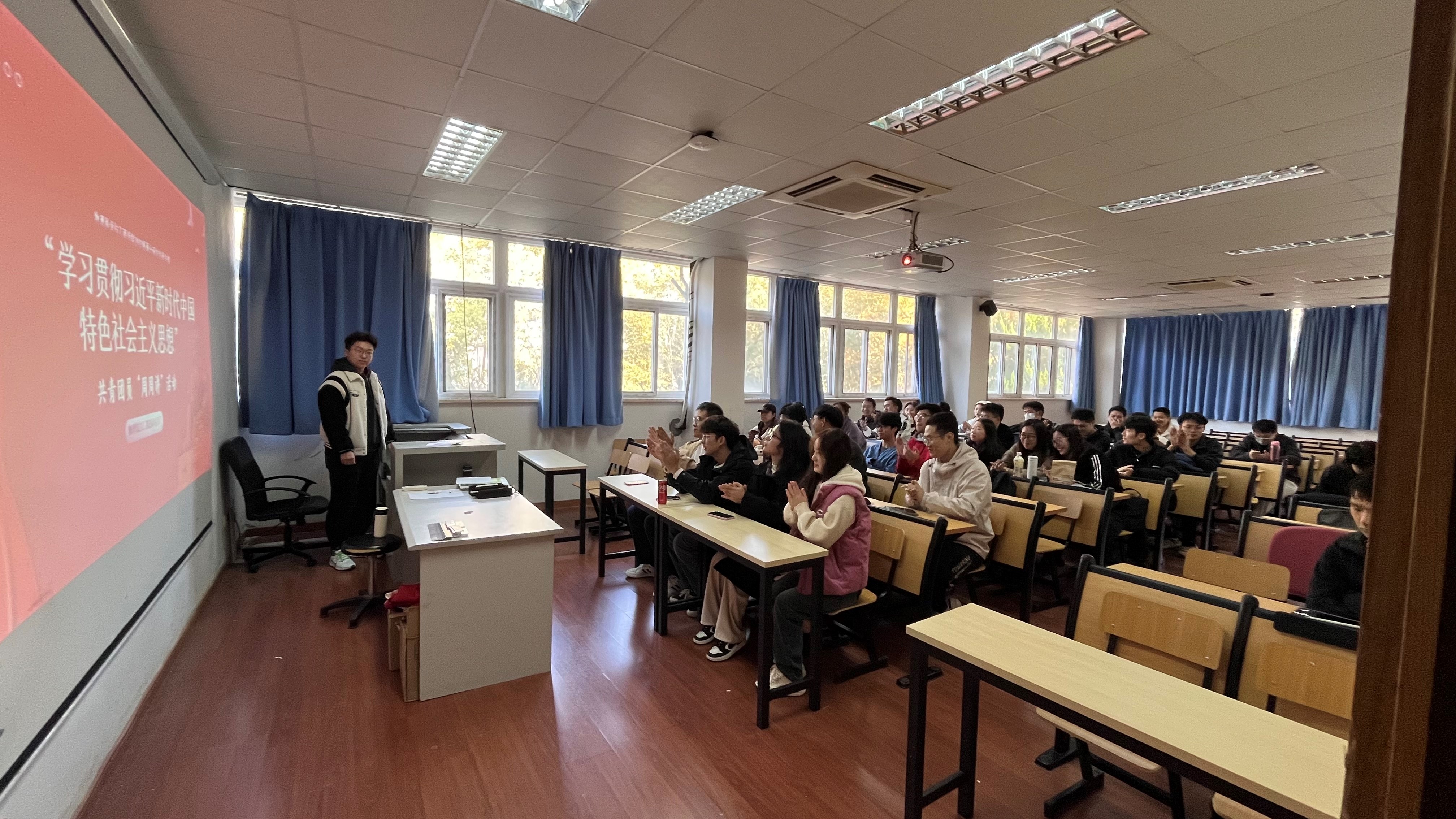 在欢快而富有青春朝气的氛围中,活动来到“习近平新时代中国特色社会主义思想”理论宣讲环节。通过对“习近平新时代中国特色社会主义思想是党和国家必须长期坚持的指导思想”、“牢牢把握习近平新时代中国特色社会主义思想的世界观和方法论”、“牢深刻领悟‘两个确立’的决定性意义”三个部分进行理论讲解与拓展,同学们表示,通过该次理论学习,对“习近平新时代中国特色社会主义思想”有了更深切的认识,更加坚定了参与到实现中华民族伟大复兴中国梦事业的决心。
